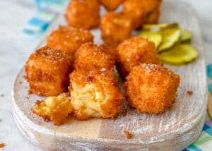 Una receta que le hace honor al clásico mac and cheese pero en versión mini y divertida. Estos cuadritos dorados son crujientes por fuera y cremosos por dentro. Una versión divertida del clásico que encantará a los amantes del queso y se convertirá en el snack favorito después de la escuela.
