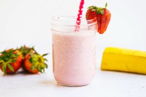 Batido de banano y fresa con leche